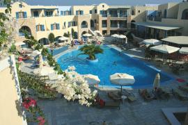 Magasan, a kráter szélénél fekszik, ahonnan csodálatos kilátás nyílik a tengerre. Fira központja kb. 1,8 km, ahol számos vásárlási lehetőség, hangulatos tavernák és jellegzetes helyi éttermek találhatók (naponta 6x ingyenes hotelbusz). Kavicsos strand kb. 8 km-re.