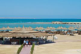 Közvetlen a szállodához tartozó, homokos strandon fekszik, egy lagúnánál. Hurghada központja kb. 20 km (buszjárat térítés ellenében).